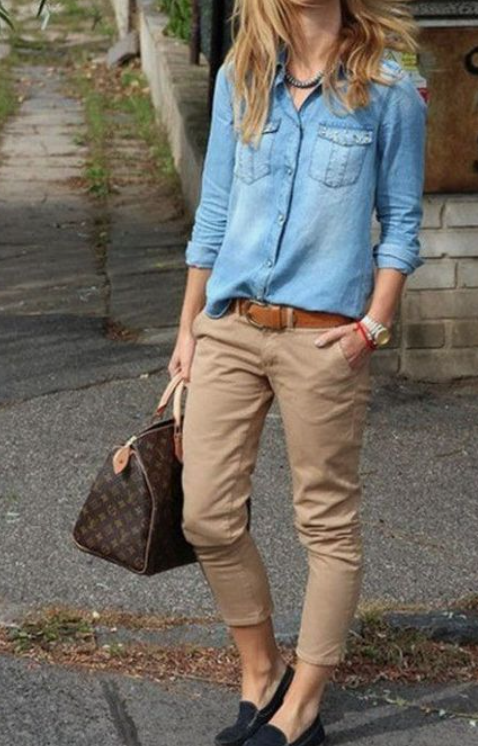 5. 데님 탑에 베이지 하의