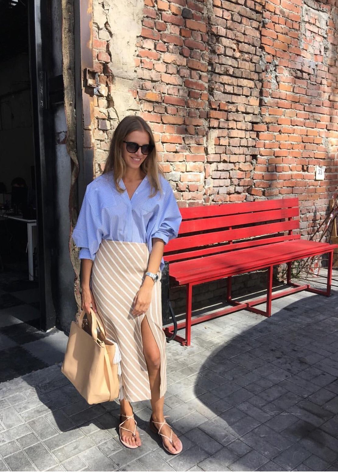 여름이면 자주 소환될 것 같은 룩이다. 포인트 컬러로 라이트블루와 함께