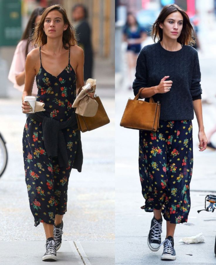 프린팅 스커트에는 구두도 좋지만 스니커즈가