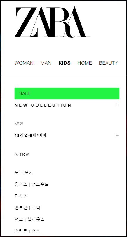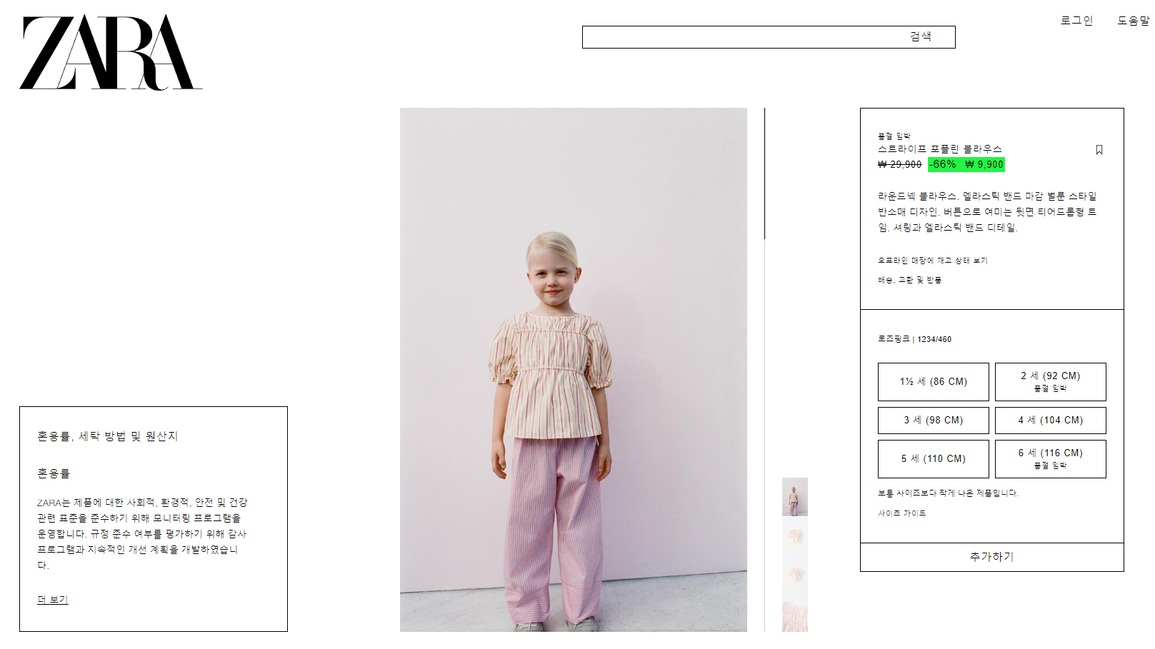 여아/남아의 개월 별로 섹션이 나누어져 있어 구입하기 편한 자라 키즈